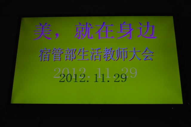 大会第三项,谭主任精心制作的课件《美,就在我们身边》盛装上演。一幅幅寝室布置图片精彩呈现,一句句关于美的名言警句动人心扉。这堂课极富知识性、趣味性和艺术性,宛如一场美妙的视听盛宴。他说,是生活教师用一颗颗诚挚的爱的心灵编制了一个个塑造学生美好心灵、培养学生生活自理能力的梦。他用深情的语言赞美着辛勤的生活老师,也语重心长地向老师们表达百尺竿头更进一步的期待。