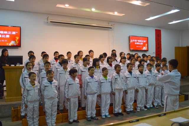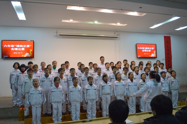 12月17、18日晚,我校小学六年级在学校报告厅举行了“唱响正源”合唱比赛。比赛前,各班都做了充分的准备,大家利用课前五分钟、音乐课、活动课等时间放声歌唱。同学们悦耳的歌声飘荡在和谐的校园中。这次比赛每个班合唱三首歌曲,其中一首是必唱歌曲《国歌》,另外两首是自选歌曲。雄壮的国歌声让全体师生肃然起敬。各班的自选歌曲都积极向上,唱出了同学们的喜悦和自豪。经过激烈角逐, 112班、109班、54班、113班、108班获得一等奖,56班、57班、59班、110班、111班获得二等奖,58班、55班、60班、53班、52班、51班获得三等奖。