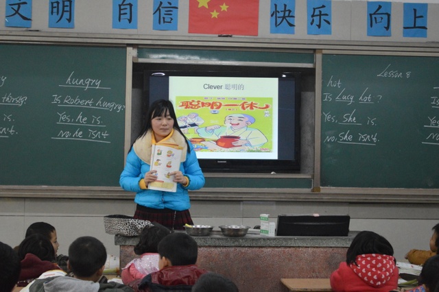 2013年元月17日上午,小学一年级英语教师张芬在159班上了一堂生动的英语课。小159班49人在轻松快乐的教学氛围中学习了第8课,这节课的教学目的是培养学生听力理解、单词认识和句型练习。罗校长、刘主任等人亲临课堂,对这节英语讲课表示非常满意。