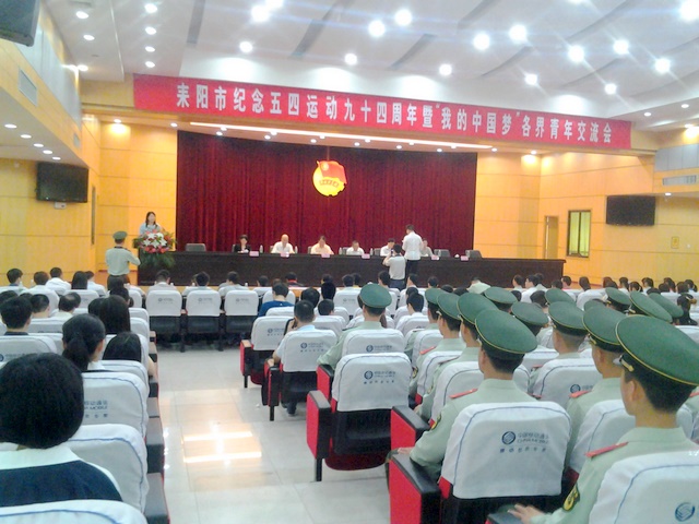 5月7日上午,耒阳举行纪念“五四”运动94周年暨“我的中国梦”各界青年交流会,包括来自我校40多名同学在内的全市各行各业的青年代表们隆重集会,畅谈我的中国梦。市委常委、组织部、统战部长刘红丹希望广大青年要敢于拥有梦想、善于构筑梦想、勤于实现梦想,为“中国梦”的腾飞做出新的更大的贡献。