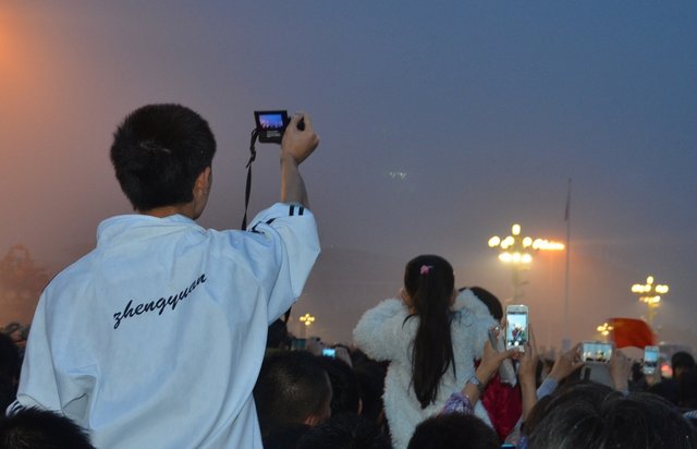 10月1日凌晨,williamhill威廉希尔亚洲官网北京励志行一行来到天安门广场观看升旗仪式。广场前已是人山人海。6点10分,国旗在雄壮的国歌声中冉冉升起,在天安门前的华灯中显得格外鲜艳。国歌声后,和平鸽在天安门广场盘旋,场面壮观。天上飘洒的细雨丝毫不能影响师生们的兴奋之情和自豪之感。