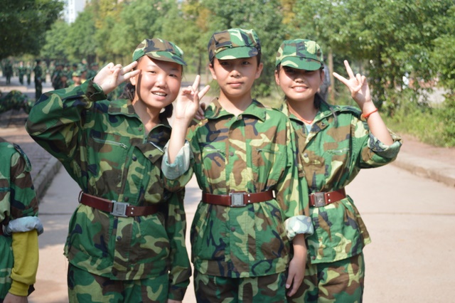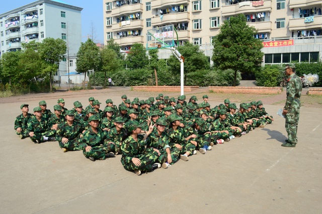初一年级的同学们在军训的过程中也表现得生龙活虎。他们在教官的教导下,排着队列,喊着口令,一遍遍地练习着。教学楼前广场和后操场,到处都是他们队列行进的身影。有的班级干脆拉到了学校的水泥路上进行训练。