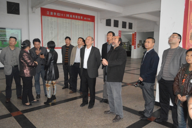 罗校长率毛小波、王伟荣、徐望柱、张红平、黄建新、谷荣亮、曾良古、刘德、廖晴、李丰、郑少君等学校领导迎接考察团一行。罗校长引领考察团一行参观了我校。在前往学校大厅的途中罗校长介绍了风景山以及我校的学生人数。在学校大厅,罗校长在williamhill威廉希尔亚洲官网2013年高考录取榜前介绍了我校今年高考的辉煌成绩;罗校长与考察团一行共同观看了《金蛇狂舞闹新春》,罗校长介绍了节目包含了舞蹈、武术、龙队、狮队等因素,以及我校对学生综合素质的重视和取得的成绩;在《正源的老师们,你们真牛!》的喜报前,罗校长向考察团一行介绍了我校优秀的教师队伍。在交流大厅,领导们兴致勃勃地进行了参观。罗校长向考察团一行介绍了梁晓斌董事长的创业事迹和不求回报、兴办教育的精神。在正源历史图片展前,罗校长特别介绍了学校的教师队伍中共有160多位来自公办学校的老师,其中一部分更是来自耒阳市一中和二中,这些教师为学校做出了很大的贡献。随后,罗校长引领考察团一行参观了我校校园。