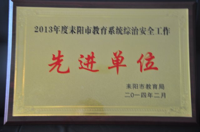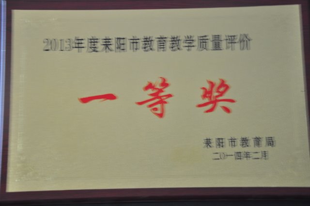 会上,我校同时荣获“2013年度耒阳市教育教学质量评价一等奖”、“耒阳市2013年度教育系统综治安全工作先进单位”、“耒阳市中小学养成教育示范学校”等荣誉。