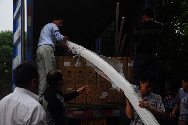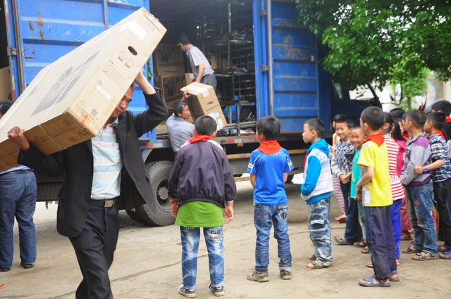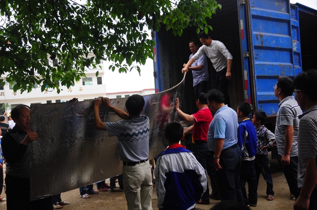 上午十二时许,满载着16台电脑及16台51吋彩色液晶电视机及相关配套设施的大卡车与负责交接的学校后勤处主管采购的陈平义副主任的五菱车同时抵达该校,太平乡学区主任、太平中心完小校长龙希平等领导热情迎接。