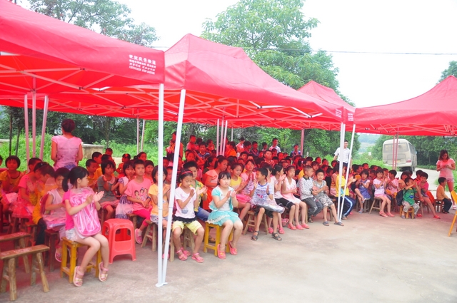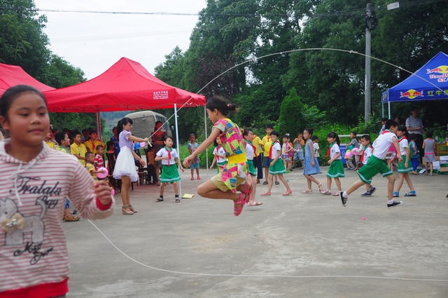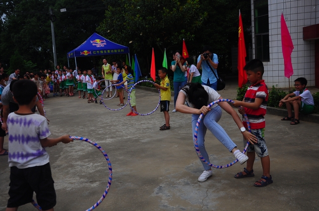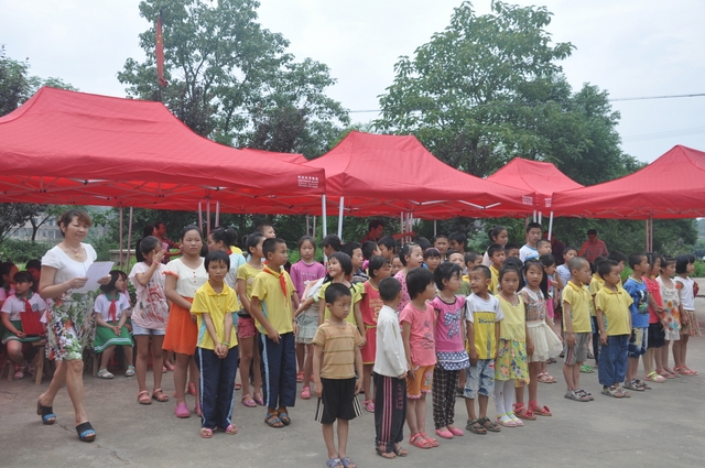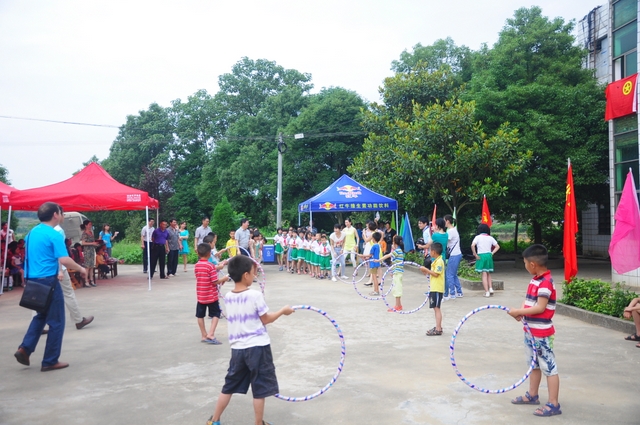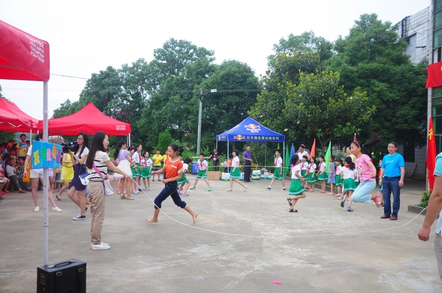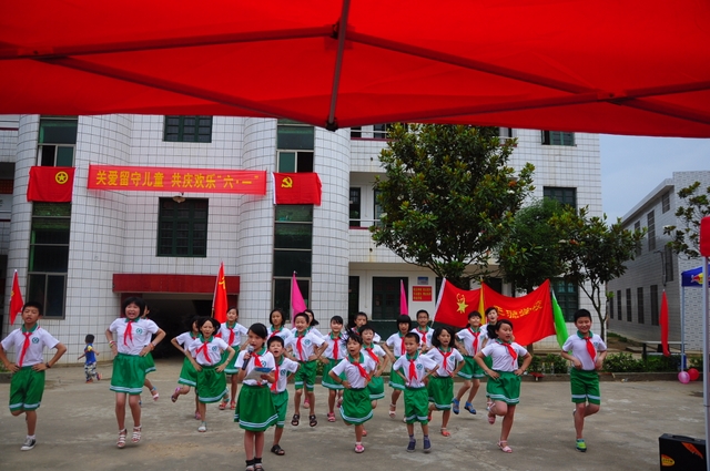 我校派出的留守儿童代表表演的歌舞成为活动的最大看点。诗歌朗诵《留守儿童之歌》倾诉了留守儿童的心声,独舞展示了留守儿童的阳光,合唱《我们是共产主义接班人》和《快乐的节日》表现了留守儿童的快乐和自信。最后由李丰老师主持的、有市领导和火田小学留守儿童参与的游戏将本次走访活动推向高潮:“小小穿山甲”——市委组织部纪检书记曾晓秋、共青团耒阳市委书记王芳带头示范;“彩球搬运师”——三顺中心校李校长、共青团耒阳市委副书记匡丽东、校团委书记周文根“身先士卒”;“跳绳我最行”——正源小学生与火田小学生集体大比拼。活动气氛热烈,每次游戏后,火田小学的同学们都能领到我校精心准备的礼物。