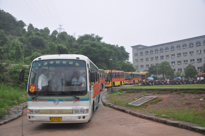 早上近八点,30辆高考专用车整齐地停在食堂前面的两条校道上,整装待发。初中部的同学们给每一辆车的两侧和后面都粘贴上红绸标语,为学哥学姐鼓劲加油。“十年一博六月梦,寒窗尽头锦绣程”、“寒窗苦读成旧梦,独占鳌头谱新篇”、“闻鸡起舞今试剑,天道酬勤明成龙”、“一朝决胜负,两日定乾坤”、“巾帼挥毫书奇志,须眉仗笔写华章”、“龙门跃鲤当有我,蟾宫折桂别无谁”、“向名校进军,圆人生好梦”、“我心飞翔,路在脚下;辛苦三年,幸福一生”、'我自信,我出色;我拼搏,我成功"、“不要自卑,你不比别人笨;不要自满,别人不比你差”、“敢打敢拼敢为人先,不到长城绝非好汉”、“十载拼搏练就摘星手,两日决战冲刺状元郎”、“急中生智 , 妙笔生花”、“九天揽月, 五洋捉鳖”、“金榜题名, 蟾宫折桂”……暖暖的话语给人鼓舞,催人奋进。
