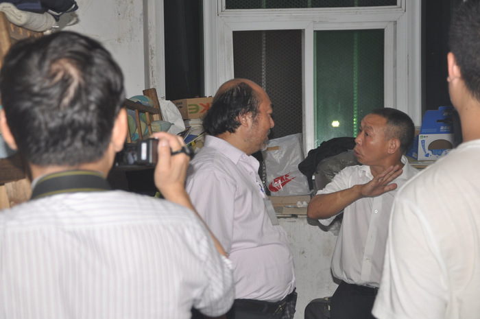 栋长郑德龙(右2)向罗校长汇报做法