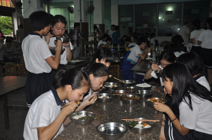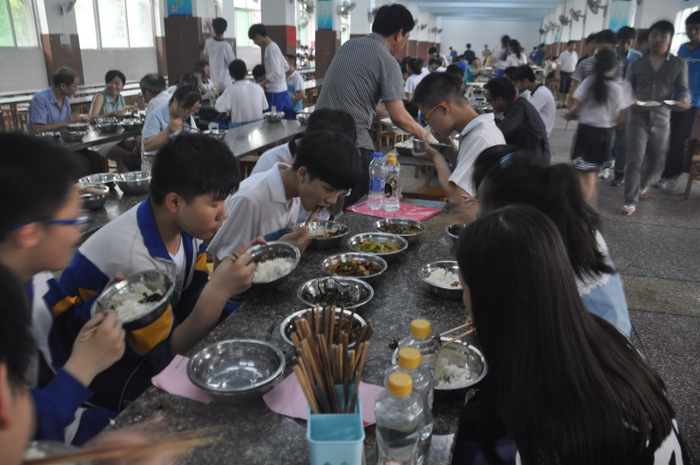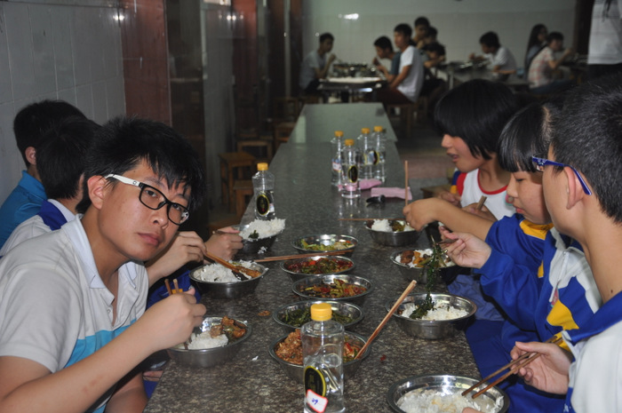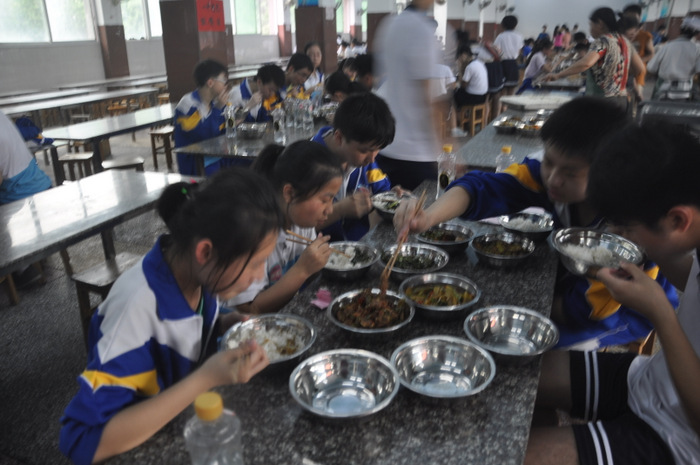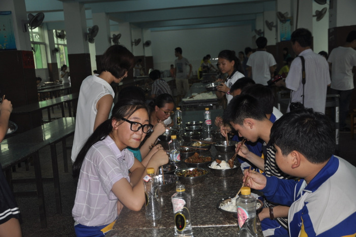联欢活动结束,同学们来到学校食堂。坐在刚刚结束高考离去的高三学生座位上,感受着他们的灵气,品味着分席就餐制的美味佳肴。这种迥异于其他学校的就餐方式,营养搭配、品种丰富的菜肴,也让同学们开了眼界,食欲大增。