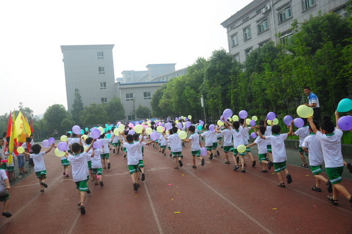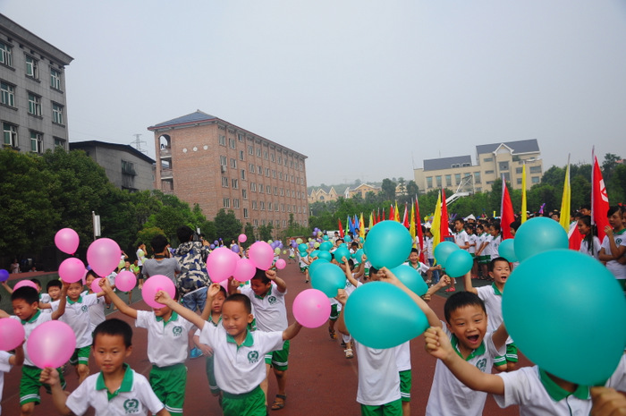 最后,罗校长用浑厚的男中音庄严宣布:“更高、更快、更强,小学部第七届运动会开幕!”话音刚落,掌声雷动。这时,学前班的全体同学手持彩色气球,从西到东跑步经过主席台,运动会开幕式达到高潮。
