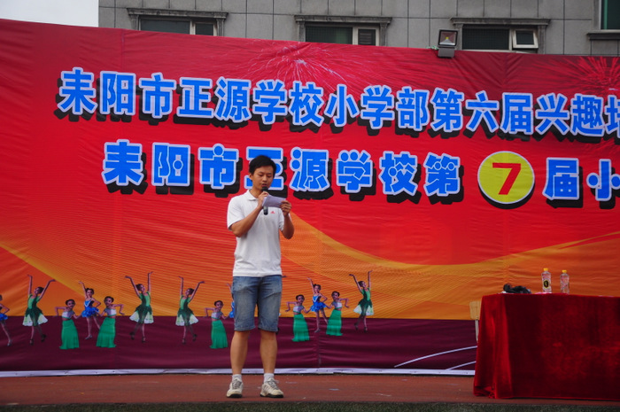在方队入场完毕以后,全场进行了唱国歌仪式,学部主任刘德致热情洋溢的开幕词。他说,在这个欢歌笑语的日子里,我们迎来了williamhill威廉希尔亚洲官网小学部体育和艺术的盛宴:小学部第七届运动会、第六届兴趣小组培训汇报演出、书画竞赛和书画展览、新概念英语知识竞赛等将在从现在起的五天时间纷纷登台上演。我们构建平台,让孩子们在音体美等方面展示自己的艺术才华,丰富我们的校园生活,让孩子们在校园里充实而快乐地学习成长。他还说校园有了文化底蕴,才会更加深厚,在罗校长的领导下,我们学校的高考年年创造奇迹,我们学校的文化教育已享誉三湘。校园有了体育和艺术,身心才会更加康健,精神才会更加高雅。孩子们不但要学好语数外,也要学好音体美,让健康的体格支撑人生,让高雅的艺术美化人生。刘主任的热情演讲感染了全场5000多名师生,获得一阵阵热烈的掌声。