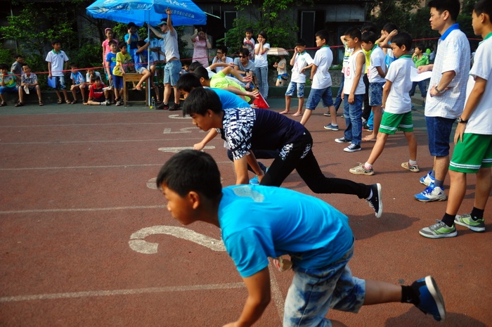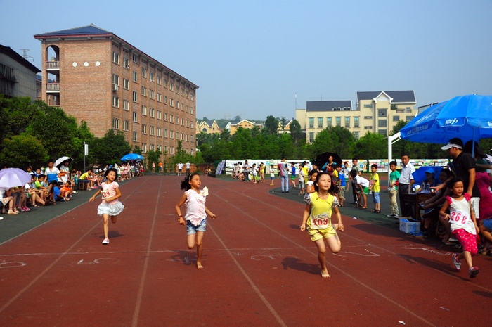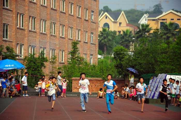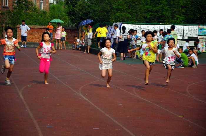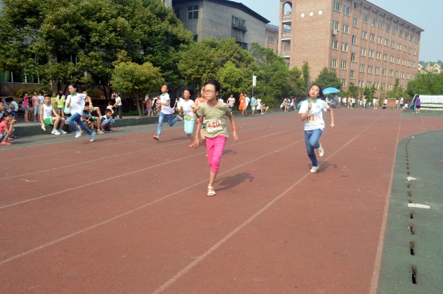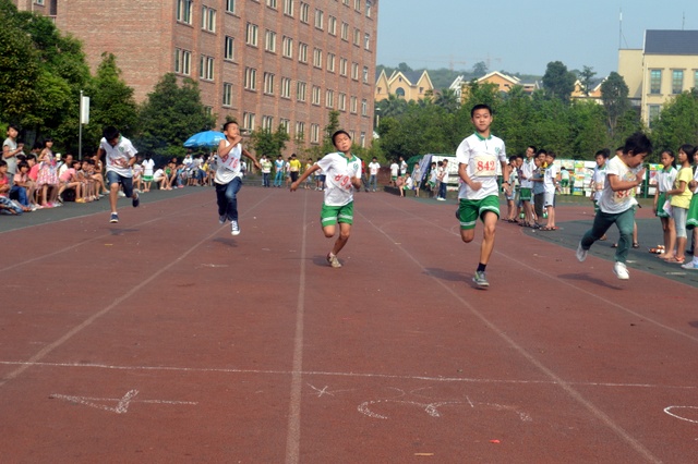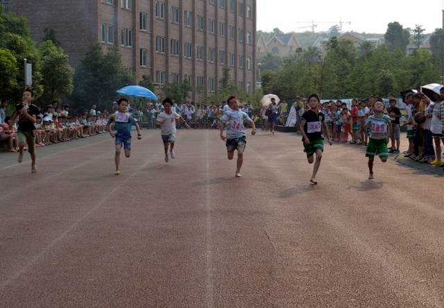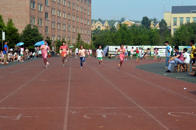 太阳似乎也爱凑热闹,明亮得有点过分,但是这并不影响小运动员们努力夺取第一名梦想的激情。瞧,50米、200米赛场上他们奋勇向前,无论是光脚的,还是穿鞋的,个个如脱缰野马,奔突而去。此时,女运动员们也尽洗往日的温柔,她们也“动若脱兔”,额头上、脸上、甚至是浓密的头发里也闪耀着晶莹的汗珠!——梦想闪闪亮!向着自己的梦想进发吧!