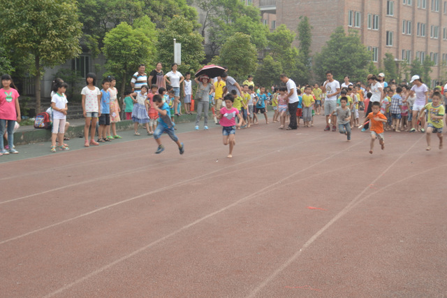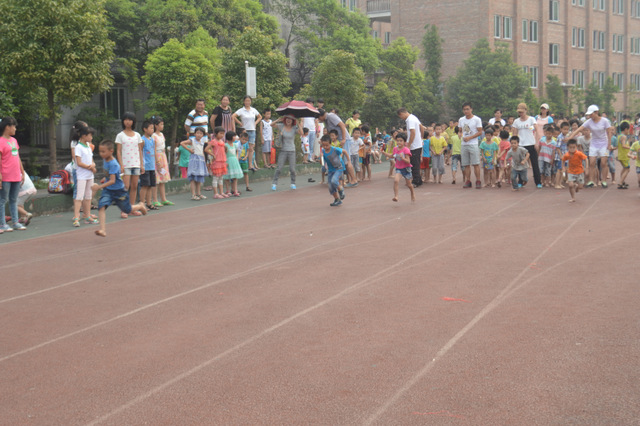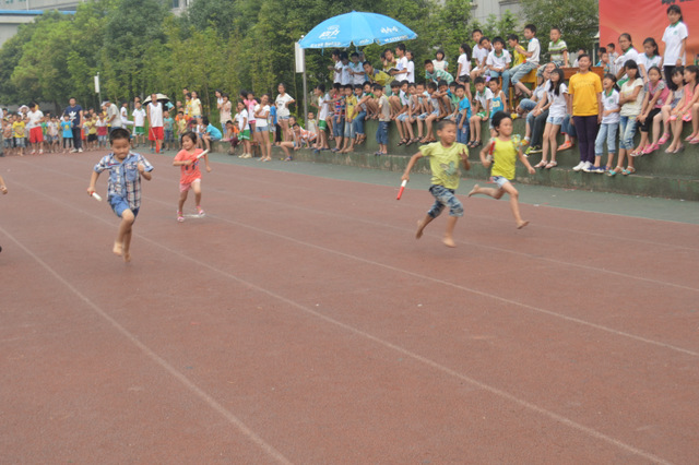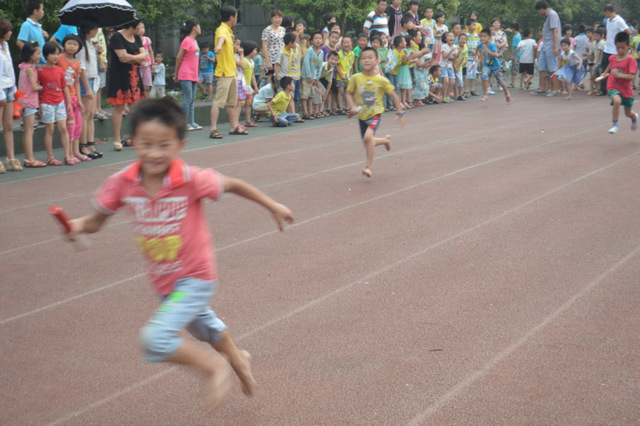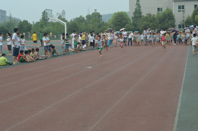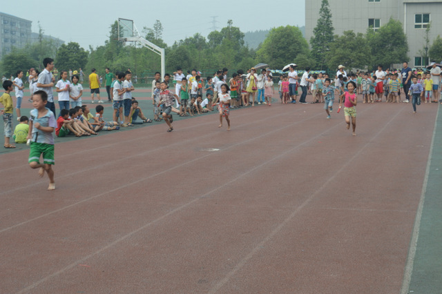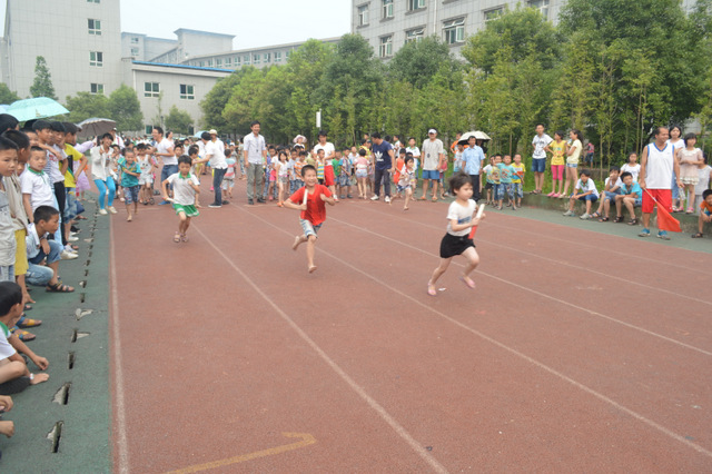 上午进行的是一、二年级小朋友们的运动会。比赛项目有:50米预、决赛;100米预决赛;200米预决赛;立定跳远;仰卧起坐。小朋友们虽然人小,但他们也知奋力争取第一。他们咬着牙,绷着脸,奔跑如小山羊,既让人爱,也让人敬,最终虽说分出了高低,但谁的脸上都写上了自豪。