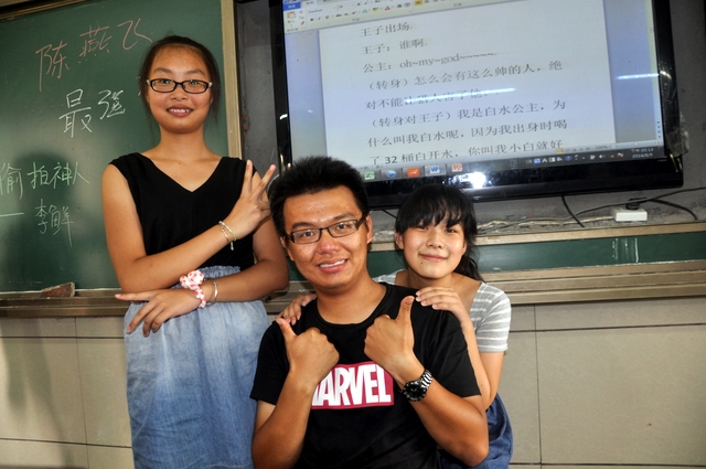 1班的欧阳书婷和尹慧娟同学忙着和摩洛哥的Houda合影留念;3班的欧阳慧和李诗诗忙着和台湾的刘又豪合影留念;4班和13班的同学们则分别急着要和自己班上的志愿者Vivi(印尼)、李祥瑞(四川大学)以及Dilara(土耳其)、Panda(中国的陈亦成)照集体照,以便能留下永久的回忆。