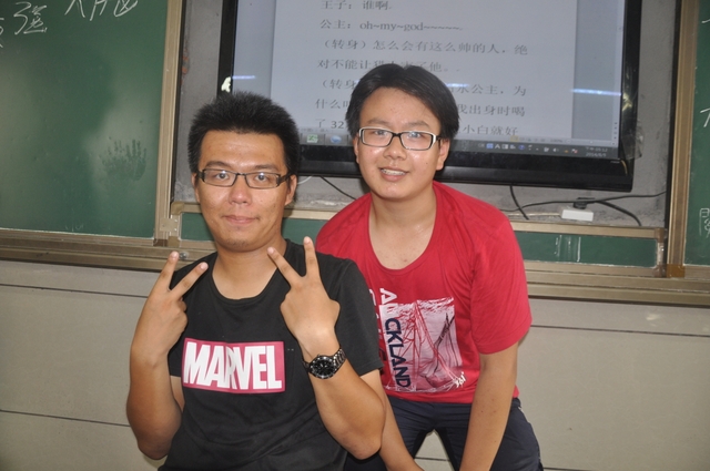 13班的高尧,这个自信阳光的男孩今天已是寝食不安,中晚餐就餐时,竟“死皮赖脸”的坐到外籍志愿者的餐桌上,与志愿者们一同吃饭,锻炼口语能力。其“醉翁之意不在酒”,就在乎能有更多的时间与志愿者交流。高尧很喜欢历史,用并不流畅的英语向志愿者介绍第二次世界大战和抗日战争。“I hate Hitler and Mussolini”引得大家哄堂大笑。来自突尼斯的Malek和来自波兰的Monika已深深地喜欢上了这位才读初一的学生。