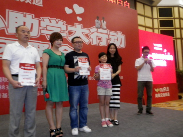 在会上,全省50多个县(区)506名寒门学子成功实现了与自己的爱心人士或爱心企业的爱心结对。我校寒门学子王晓荣、龚源、蒋道元、龙梅录、伍毅杰等17人在现场得到了与自己结对的爱心人士的首期助款5000元。这些爱心人士见到自己结对寒门学子后或相拥而抱,或寒虚问暖,或递名片留电话,或拍照留念,或嘱以希望和理想。。。。。。