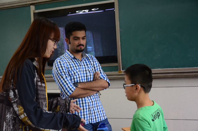 今天下午三点左右,小学部礼正楼二三楼热闹非凡,不仅在室外的走廊上,还是在教室里面,都簇拥了很多学生和一些中外志愿者。原来是“幸福微梦想”夏令营的“Amazing Race”正在进行。