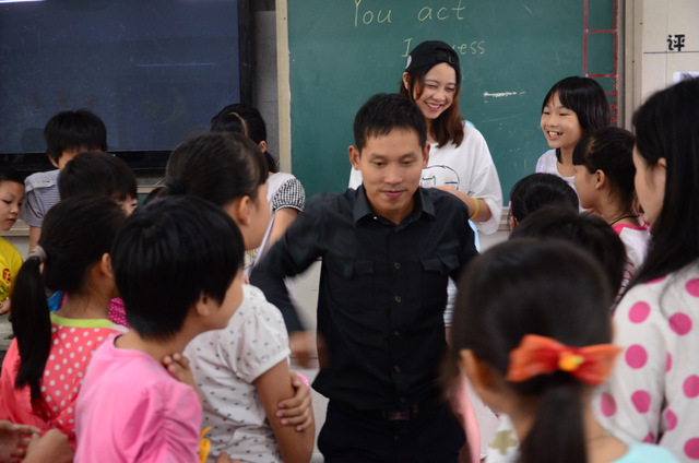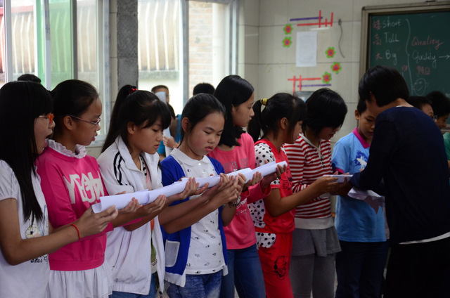 “Amazing Race”( 奇妙旅程)结束了,但学生们的热情还没有完全退去,有的继续与志愿者老师嬉戏,有的拿着夏令营的文化衫或笔记本让志愿者老师签名,还有的邀约自己喜欢的志愿者老师合影留念。(文/刘金辉)