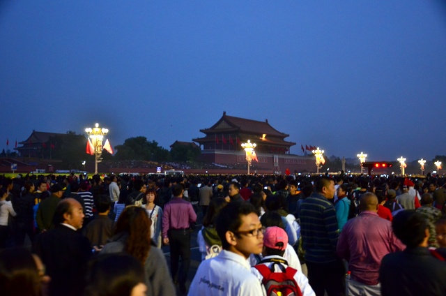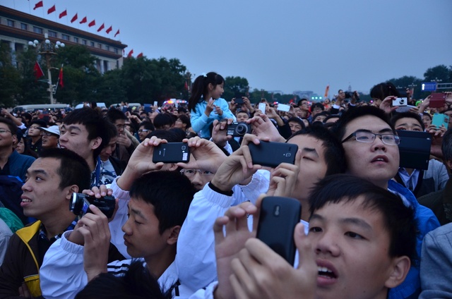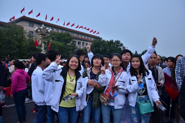 当同学们到达天安门广场时,天空的东方刚露出乳白,然而此时的天安门广场炬形花篮与人民英雄纪念碑前后已经“座无虚席”了。后面的新闻资料显示,来天安门广场参加本次十一国庆升旗仪式的人民群众多达12万多人,当中有老人也有女人和小孩,有领导也有工人农民的普通群众,有劳模也有平凡岗位的公民,有汉族人也有其他少数民族的代表。