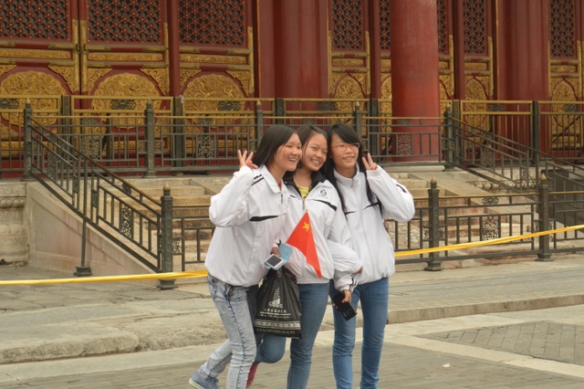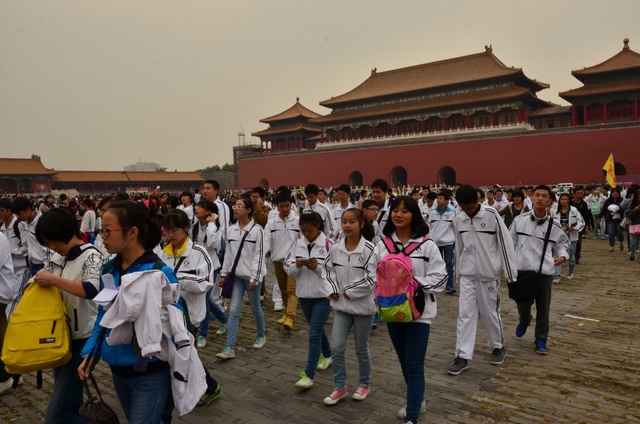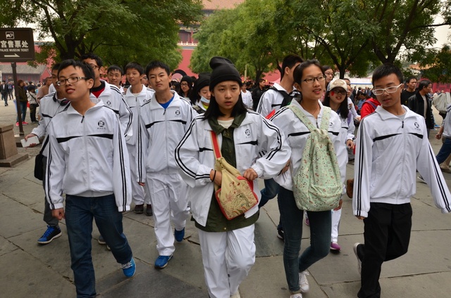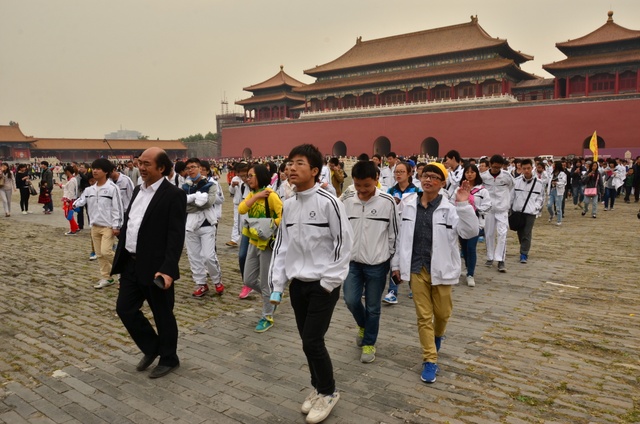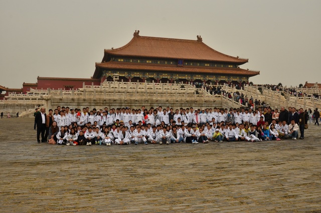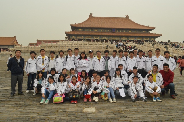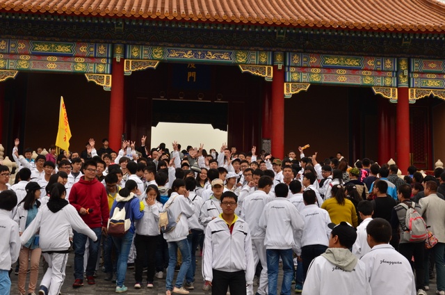 上午10半左右,同学们排着整齐的队伍迈进了故宫。故宫又叫紫禁城,是中国现在规模最大的皇宫,也是世界上最大的皇宫。黄色的琉璃瓦。红色的围墙,这种基调的构成主要是出自中国古老的思想:以中心之地的黄色和代表光大吉祥的红色来表现。这种色彩也昧示了皇帝居住的紫禁城为天下的中心。