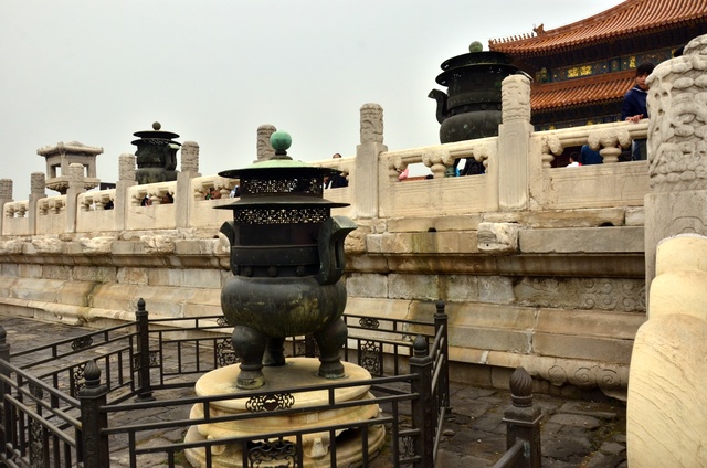 接下来,同学们继续沿着这条中轴线参观了“三殿三宫”。“三殿”通常指的“前三殿”即太和殿、中和殿、保和殿。太和殿通常是皇帝举行祭祀大典,文武百官上朝议事的地方。中和殿是皇帝休息换衣或者是出朝前做准备的地方。保和殿则相当于我们现在的人民大会堂,是一个会见宾客的地方,也是皇帝举行殿试的地方。 而“三宫”则指的是乾清门后面的“三宫”即乾清宫、交泰殿、坤宁宫。其中乾清宫是皇帝的寝宫,从清代的雍正起就搬到养生殿去了;交泰殿是皇后的正殿;坤宁宫则是皇后的寝宫。