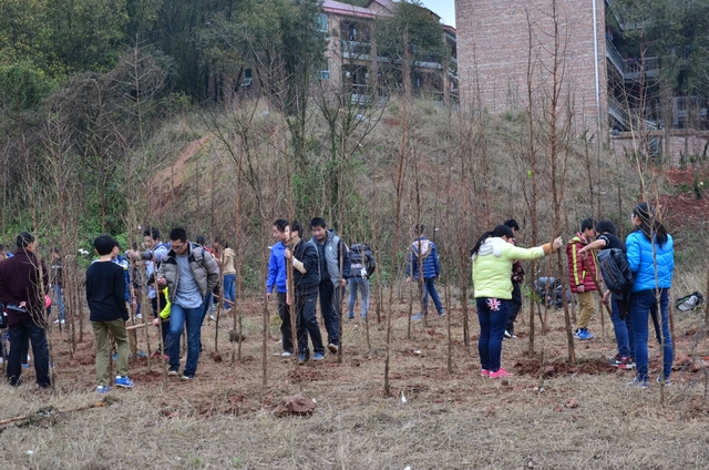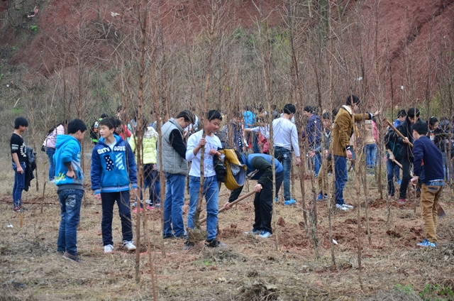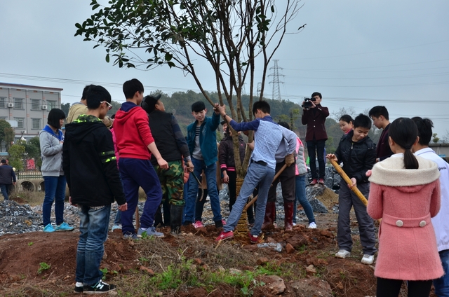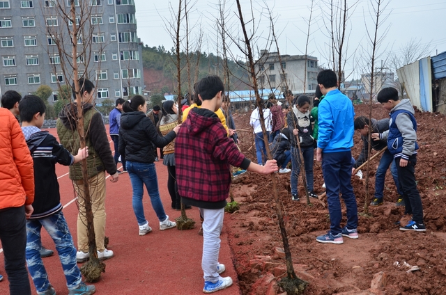 3月12日,是植树节。williamhill威廉希尔亚洲官网在校长罗湘云的号召下,校长室、后勤部、团支部、德育处、综治办、工程部六个处室及1000多名初高中学生,分上下午两场在学校中学生运动场外围进行大规模的植树活动。