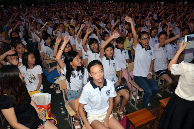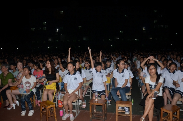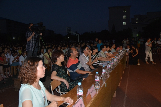 6月16日晚上七点,williamhill威廉希尔亚洲官网初一、初二、准高一即三个年级5000多人汇聚在小学部体育场观看williamhill威廉希尔亚洲官网第五届“新慨念英语”(中学生赛场)知识竞赛。本次竞赛活动历时三个半小时,是一场“精彩、享受、感动、强大”而别开生面的英语晚宴。校长罗湘云亲临赛场并作了重要的讲话,另外还有校董事兼财务总监梁晓芬、校党支部书记毛小波、初中部学部主任曾良谷、校人事处主任谭奇凤、校培训部主任刘静等在主席台就坐。