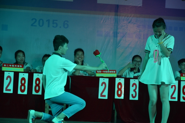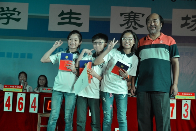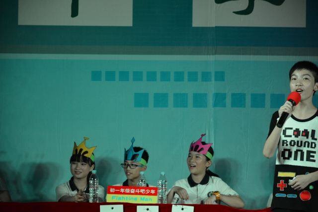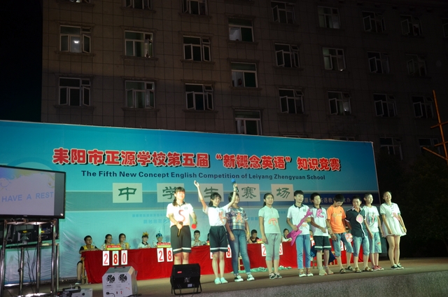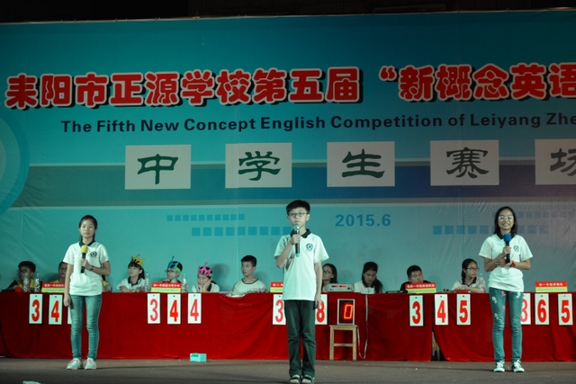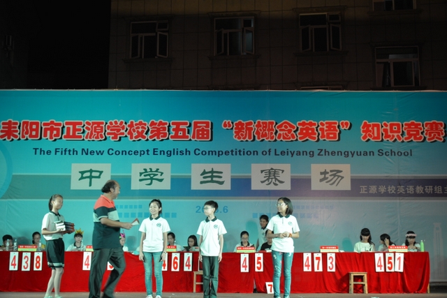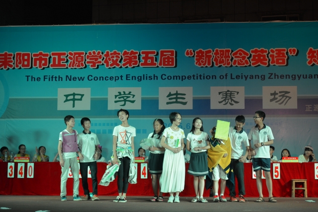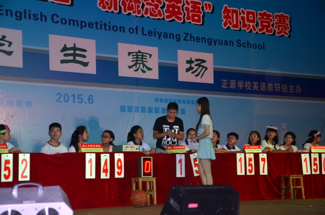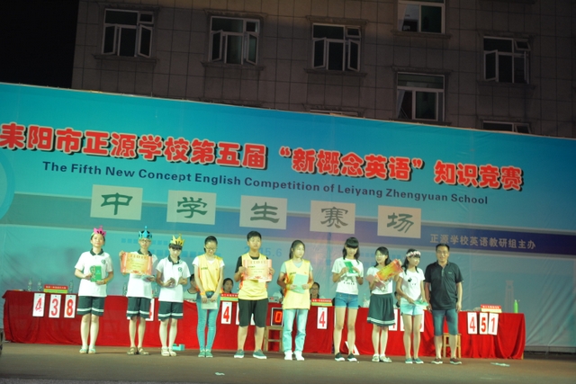 本次比赛活动一共由六个代表队参加即初一的“奔跑队”和“奋斗吧,少年”,初二的“天使队”和“阳光队”,准高一的“英语联盟队”和“疯狂大陆”。最后经过激烈的角逐,由初一“奔跑队”以473的高分摘取了本次比赛团体的桂冠,初二的“天使队”和准高一的“英语联盟”获得团体二等奖,初二的“阳光队”、初一的“奋斗吧,少年”和准高一的“疯狂大陆”获得团体三等奖。另外还产生了三个个人奖即准高一“英语联盟队”的廖一彪获得“最佳口语奖”,初一“奔跑队”的邓建琼获得“最佳风采奖”,主持人曾紫萱获得“最佳主持人奖”。会后团体冠军队即初一“奔跑队”和观众代表准高一101班的陈琪同学(从2005年进入正源学前班伊始,迄今整整十年了)在接受宣传处王英林主任采访时脸上洋溢着灿烂的笑容,因为享受。