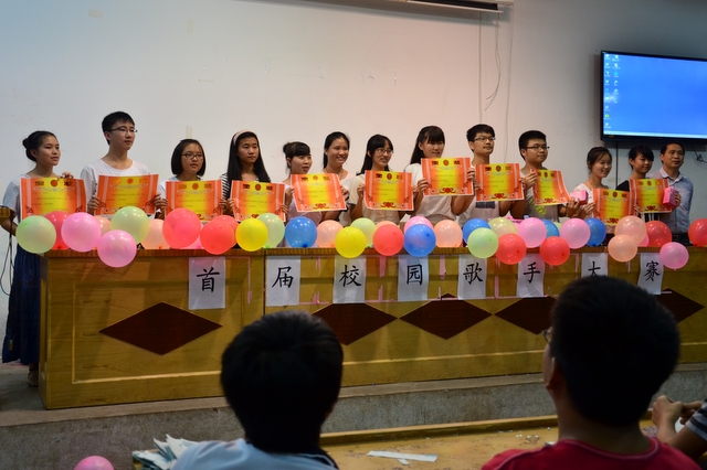 此次校园歌手大赛由校团委主办,整个赛程历时近两个月。歌唱爱好者们经过了紧张而有趣的海选初赛、复赛环节的激烈角逐,最终有12位选手进入决赛。决赛赛制分为两个部分:第一个为帮帮唱环节,第二个环节是选手的独唱曲目。主持人、评委都是由学生来担任。
