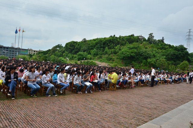 7月7日,初二年级在学校南操场召开升准高一考试动员大会。