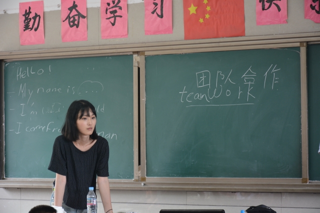 其他班的志愿者也都各有一套,有说自己家乡的风光,有说用什么方法可以翻越长城的,有把学生拉到运动场比拼灵活性的,……在一声声的“No”、“Yes”中,在一阵阵掌声中,大家很快成了朋友。