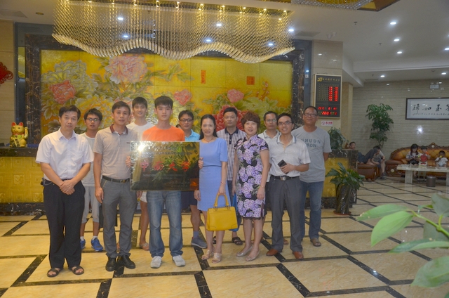 郭微勇的小学老师也赶来了,为自己当年的得意门生祝福。罗校长特意叫过郭微勇,一起与小学老师合个影,感谢小学老师培养了这么优秀的苗子。