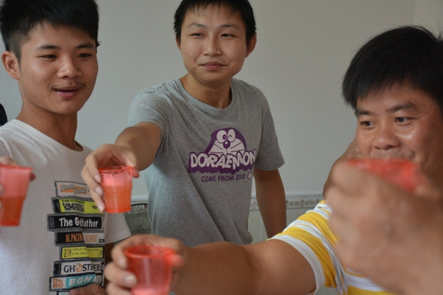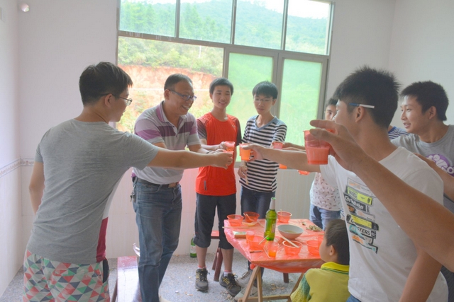 罗校长与同学们碰杯