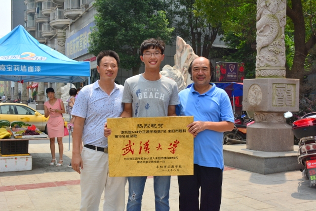 (一)从小学便进入正源的谭凯旋今年高考以634排名耒阳市理科第18名williamhill威廉希尔亚洲官网第7名的成绩被武汉大学录取。谭凯旋的父亲是正源老师,母亲也在正源工作,孩子很争气,也很努力,在学习上以及言谈举止都比较出色。