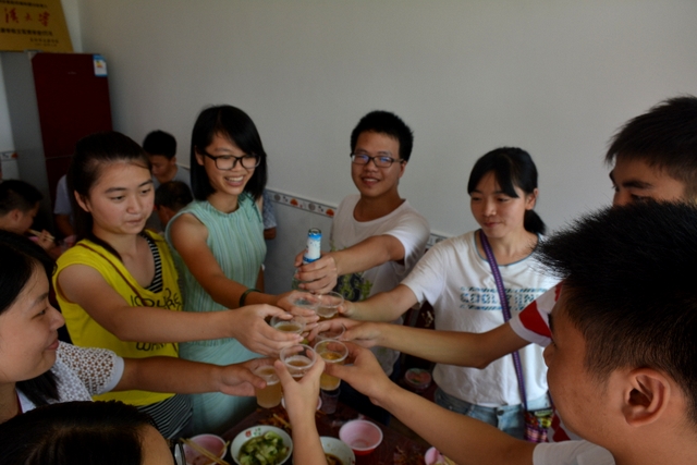8月25日,考入武汉大学的谭凯旋和谢辉琼分别摆设谢师宴,感谢老师和亲朋好友。