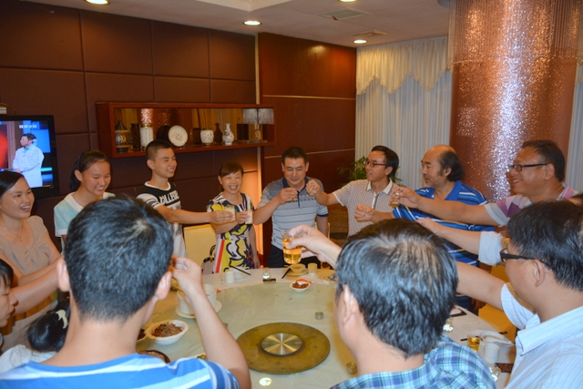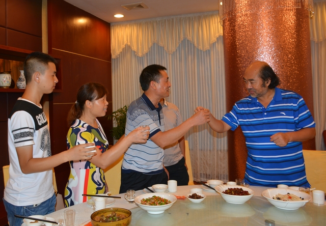 2015年8月30日,唐潮和陈妍两家子邀请罗校长与高三科任老师江宗斌、谭奇凤、郑桂平、陈斌、李康活、刘伟南在天福韵酒店举行谢师宴。感谢学校以及老师的辛勤栽培。