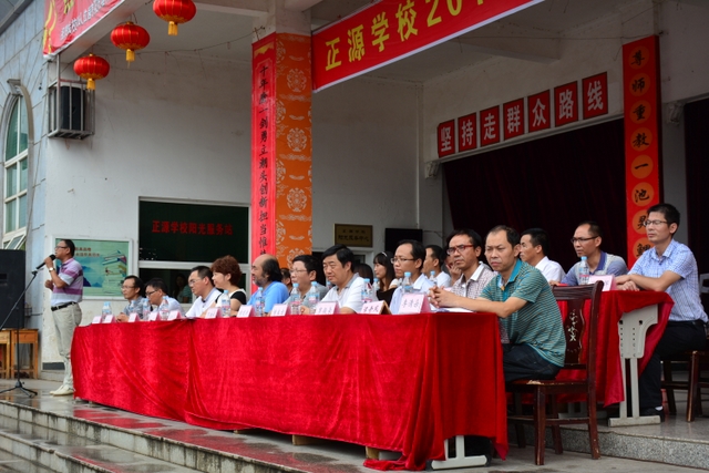 9点20分,校长罗湘云、财务总监梁晓芬、党支部书记毛小波、工会主席陈斌,学部主任黄建新、曾良古、罗俊豪,部门主任朱明之、王伟荣、李清朵、王大昌、谭其凤、周文根、谷荣亮、谭晓云,以及初中部年级主任徐作耘、唐循男、倪南辉、小学部副主任贺江云、周运根、刘溅生、谢红云等在大会主席台落座。