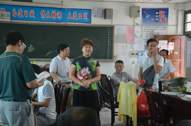 9月10日。上午十一时许,送走了市领导刘市长一行后,罗校长、梁总监便率领学校部分领导慰问团来到各学部各年级办公室,亲切看望教师,并向全体教师发放教师节慰问金。不少办公室的黑板上写出了“热烈庆祝第三十一个教师节”、“祝老师们节日快乐”等标语。罗校长一行所到之处,老师们欢声笑语,对学校领导的到来报以热烈的掌声。初三年级女教师代表给梁总监、罗校长以热情拥抱。罗校长衷心感谢各位老师的辛勤工作,感谢老师们为学校所做出的贡献,希望老师们再接再厉,更上一层楼。梁总监说,这么多年来,我沾老师们的光,吃了不少谢师宴,老师们给我们增足了“面子”,我代表学校给大家一点“里子”。说完,即将用红纸包封的慰问金交由各年级主任代为发放。