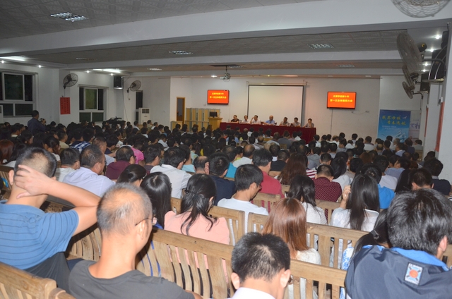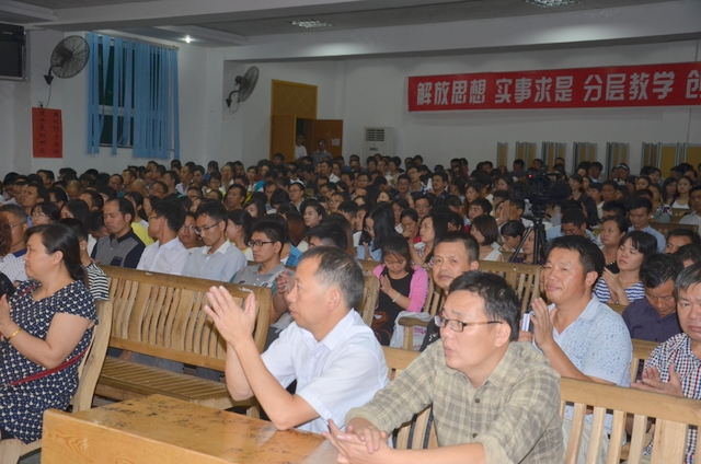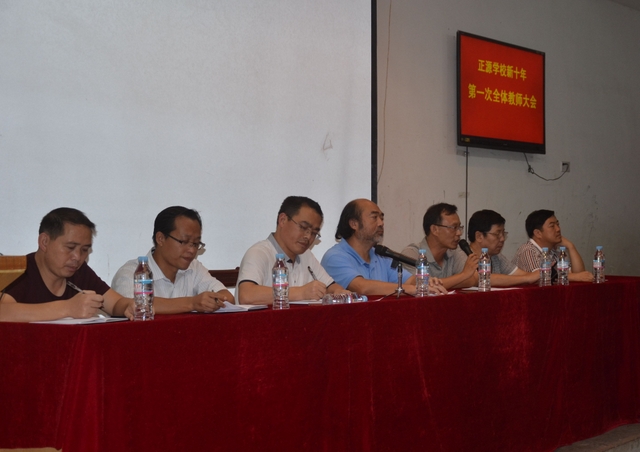 在大会主席台就坐的还有:学校党支部书记毛小波,学校办公室主任朱明之,高中、初中、小学三个学部主任黄建新、曾良古、罗俊豪,宿管部主任周文根。朱明之主持会议。
