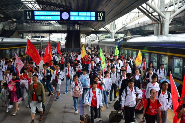 9月28日晚上8点多,励志行队伍到达长沙火车站。