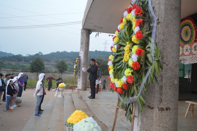 10月20日下午,在耒阳市青山陵园,我校为食堂职工陈菊香同志校外遇难举行追悼会。罗校长、工会主席陈斌、食堂主任徐望柱、四食堂主任梁山陶、德育处副主任谭小云、校长助理廖晴、学校招生办主任李丰,和各学部教师代表、各食堂职工代表、准高一至高三年级学生代表,以及陈菊香同志家属、亲属近百人参加追悼会。