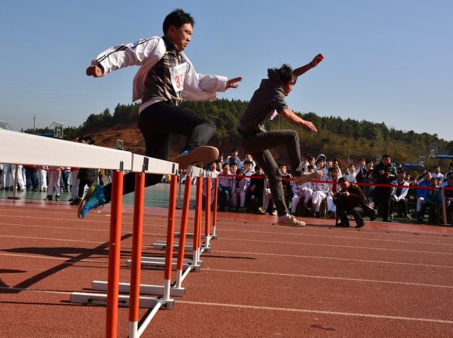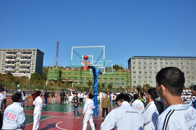 今天是体育艺术节的第一天,上午开幕式结束后,马上进入了体育比赛。今天的比赛项目主要有初三男子跳高、初一女子跳高、初一男子1分钟定点投篮、初二男子铅球和仰卧起坐、男子110米栏,女子100米栏等。