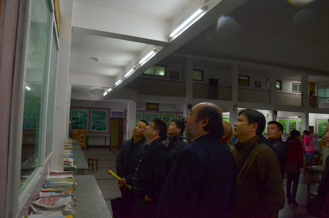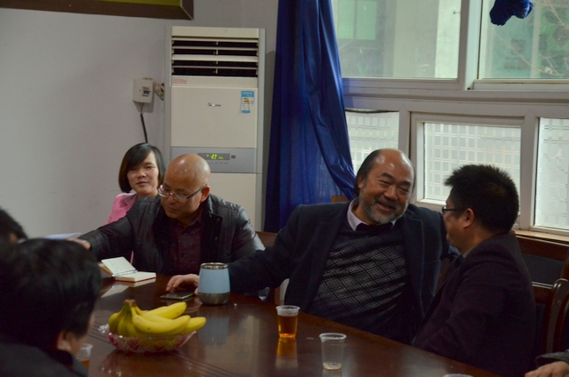 正源初中部主任曾良古向客人介绍初中教改教研情况