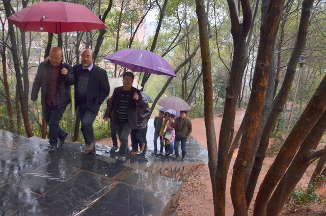 座谈会结束后,客人们冒雨参观了我校的红砖建筑:小学部和初一年级的四幢教学楼和西苑学生宿舍,对建筑工艺和宿舍管理表示赞叹。途中经过小学部果吧时,进去参观,随机品尝学校自做的面包,对面包的色香味形赞不绝口。