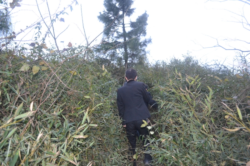 在小镇上午餐后,村民们带着我们去登山——井立坳。井立坳距离五公岩只有两三里路,据说是龙归山一带最高峰,不管是否属实,可以肯定的是,空军曾在上面建过航标灯塔,笔者拍到了遗址。