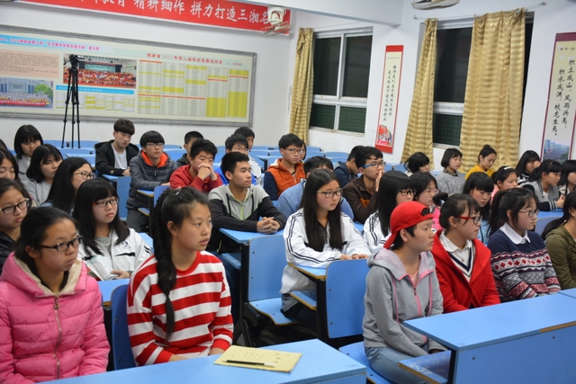 3月18日晚8点, 高二文科优秀学生2017年高考备考动员会在教学楼二楼教师培训室举行。校长罗湘云、年级主任王伟荣、教务主任王大昌及各班主任及科任老师代表在主席台就座。
