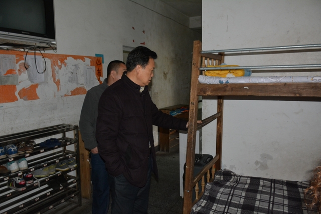 客人对学生宿舍的双层床看了又看,摸了又摸。