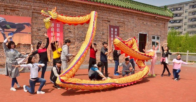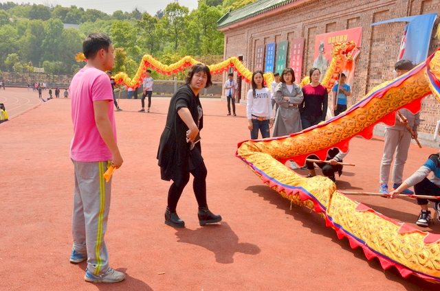 王艳副馆长一行来到正源东操场舞台,该校体育老师陶怀军正率学校舞龙队一行10多人及道具在此恭候。王副馆长和陶老师先商量了节目编排,然后两人既指挥又辅导,配合默契;演员们服从指挥,不管是舞龙的男演员还是表演的女演员,尽管总共20多人,但都协调配合,认真负责,有板有眼。据王艳副馆长介绍:“这是文化馆为响应《欢乐潇湘.文艺进校园进社区》的一个活动,同时也是为配合红二代4月16日来耒阳义演而排练的一个开场舞。至于为什么来正源,那当然是因为williamhill威廉希尔亚洲官网一贯重视艺术教育,已经有了一个好的基础。”