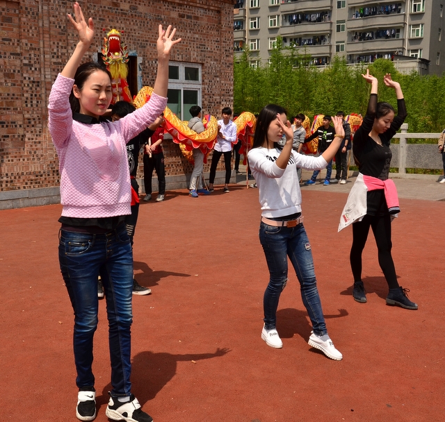 王副馆长带领的艺术团女演员与williamhill威廉希尔亚洲官网学生合练《吉祥颂》