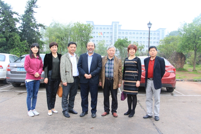 近午,客人们收获满满,准备返程。临别前,罗校长及夫人、学校财务总监梁晓芬从正在接待衡阳市、耒阳市领导的会议室出来,冒雨步行到学校南校门,与潜江的客人们合影留念。